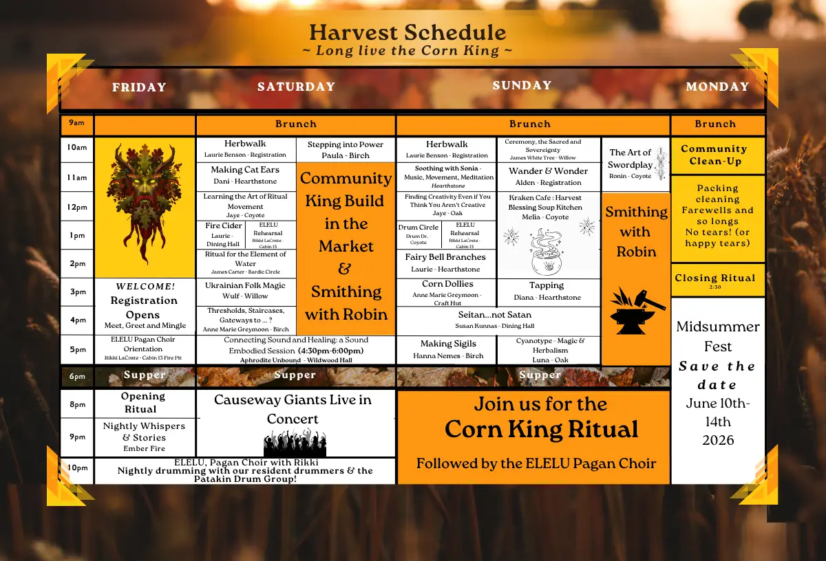 We will honour the spirits of the land, acknowledge those who came before us, and invite the blessings of the elements and our ancestors. Together, we set the tone for community, celebration, and magick.